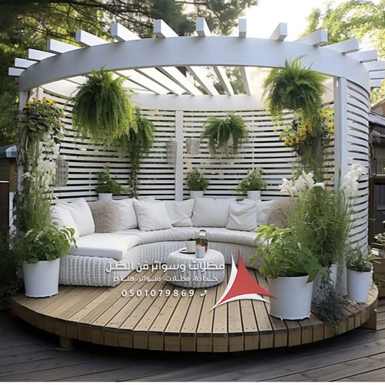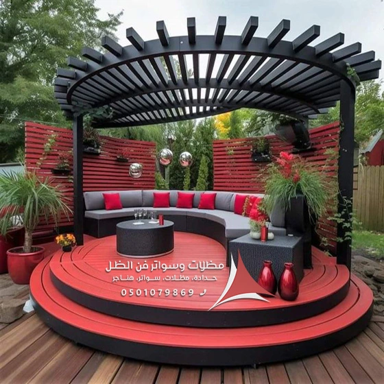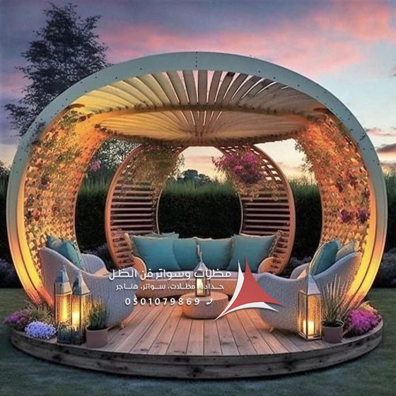 كما نوفر لكم أشكال برجولات دائرية ،تتميز بتصميمها الحديث وللحجز والاستفسار عن المزيد ، كل ما عليك هو الاتصال بنا بالجوال ، أو المراسلة بالواتساب عبر الأرقام التالية :